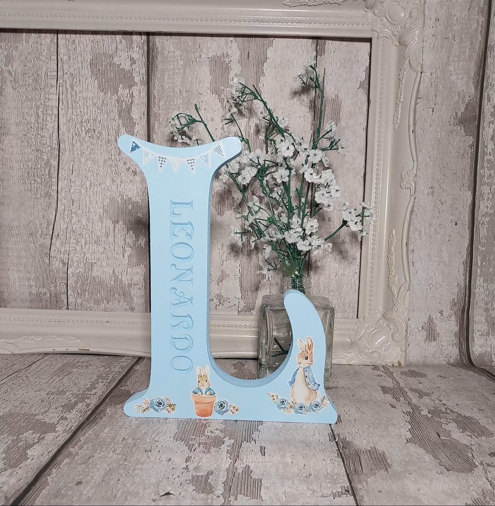 Peter Rabbit personalised letter plaque, Beatrix potter personalised engraved name. Flopsy bunny nursery ornament , any colour. Baby gift. – Artsy Craftsy
