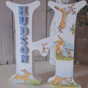 Childs personalised letter, nursery décor. Teddy bear, cartoon animal, unicorn decorated. First birthday keepsake art. Wooden letter plaque.