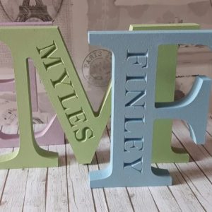 Engraved ornamental plaque, personalised capital letter, freestanding hand painted decor, Initial alphabet with name, any colour.