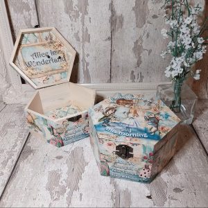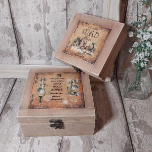 Alice in Wonderland set 2 boxes. Wooden jewellery chest keepsake storage. Mad Hatter. Box for bits and bobs. (Copy)