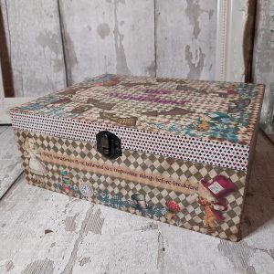 Alice in Wonderland jewellery box. Wooden chest keepsake storage. Mad Hatter, White Rabbit. Large box for bits and bobs